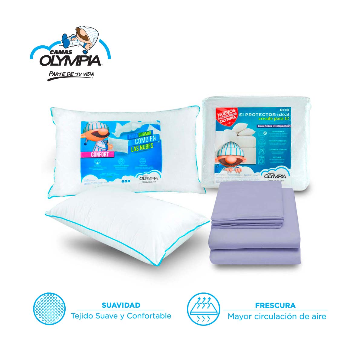 SÁBANAS OLYMPIA: Obtén toda la suavidad y frescura con las sábanas Olympia, Son 100% lavables hechas de microfibra tratada.